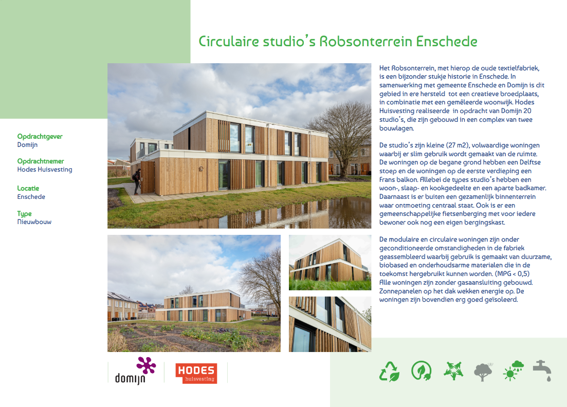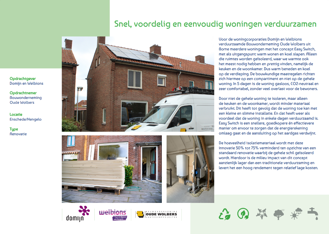 Provincie Overijssel, Woningcorporatie Domijn en gemeente Enschede brengen de beste voorbeelden op het gebied van toekomstbestendig bouwen en renoveren bij elkaar ter inspiratie en aanjagen van de markt.