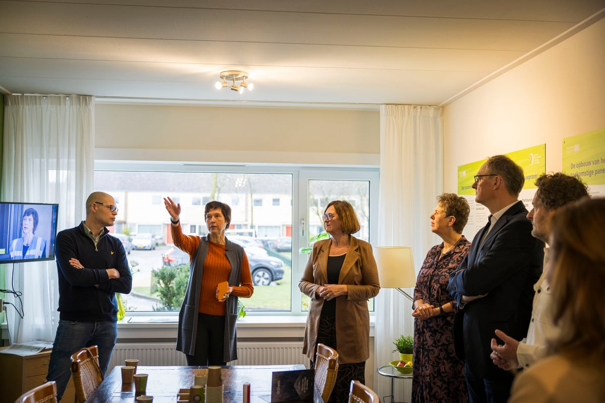 Het Innovatiehuis is op 7 februari officieel geopend. Liesbeth Grijsen, Wilma van Ingen en Jeroen Diepemaat werden als eerste rondgeleid, samen met meerdere partners vanuit bouwbedrijven en opdrachtgevers die op dit moment met hun duurzame toepassingen in de showcasewoning te zien zijn.